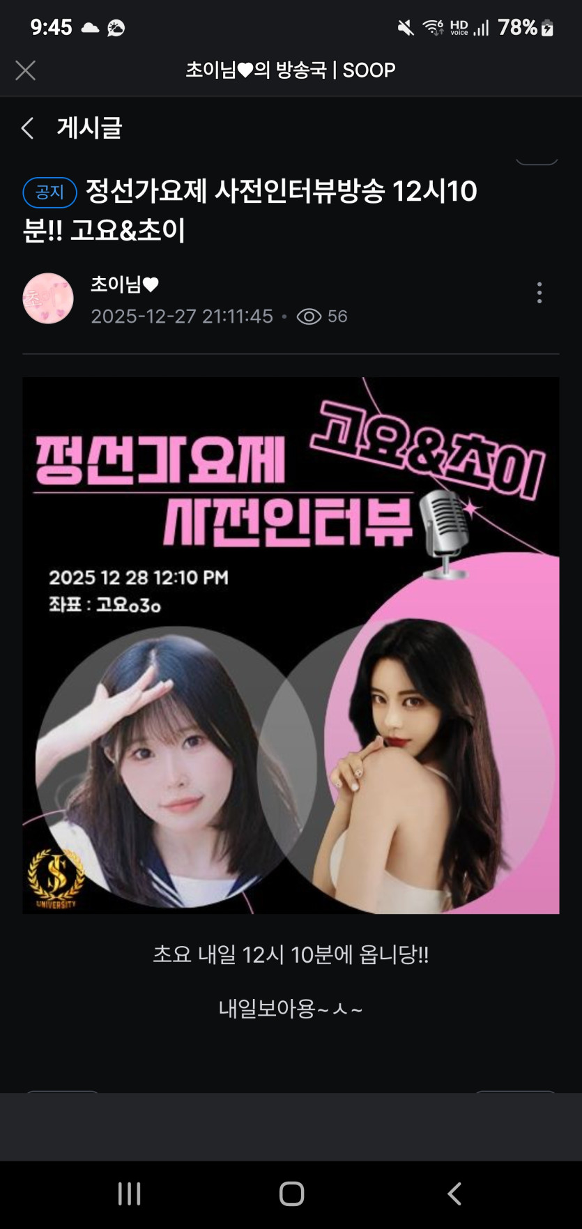 개초보퍼니 작성일가요제는 5시인데 12시에 킨다고?? 간격이 너무 긴거 아닌가 ㅋㅋㅋ