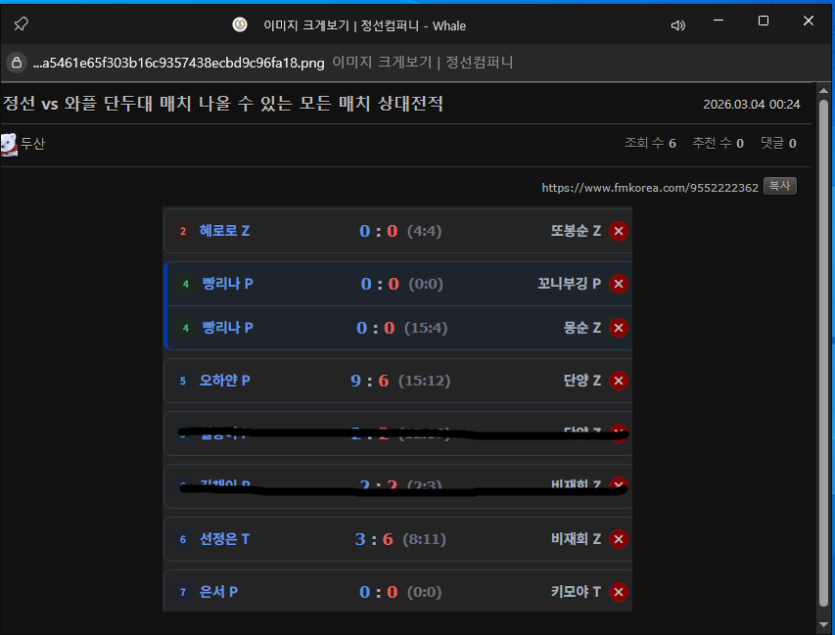 - 다음글박퍼니, 전태규 둘다 ㅈㄹ비겁하다고 내가 말했자나, 성적은 내고 싶고 악역은 하기 싫고ㅋ 26.03.04