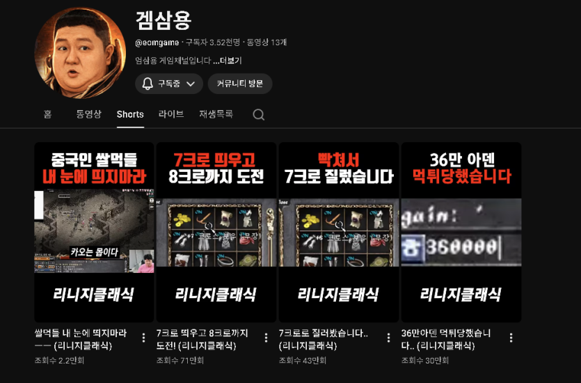 퍼니형~ 유튜브 좀 키워봐, 팥순이하고 삼용이 조회수 잘 나오더라