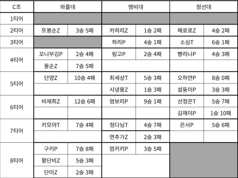 정선 미니대전만 보면 6,7티어만 약했네