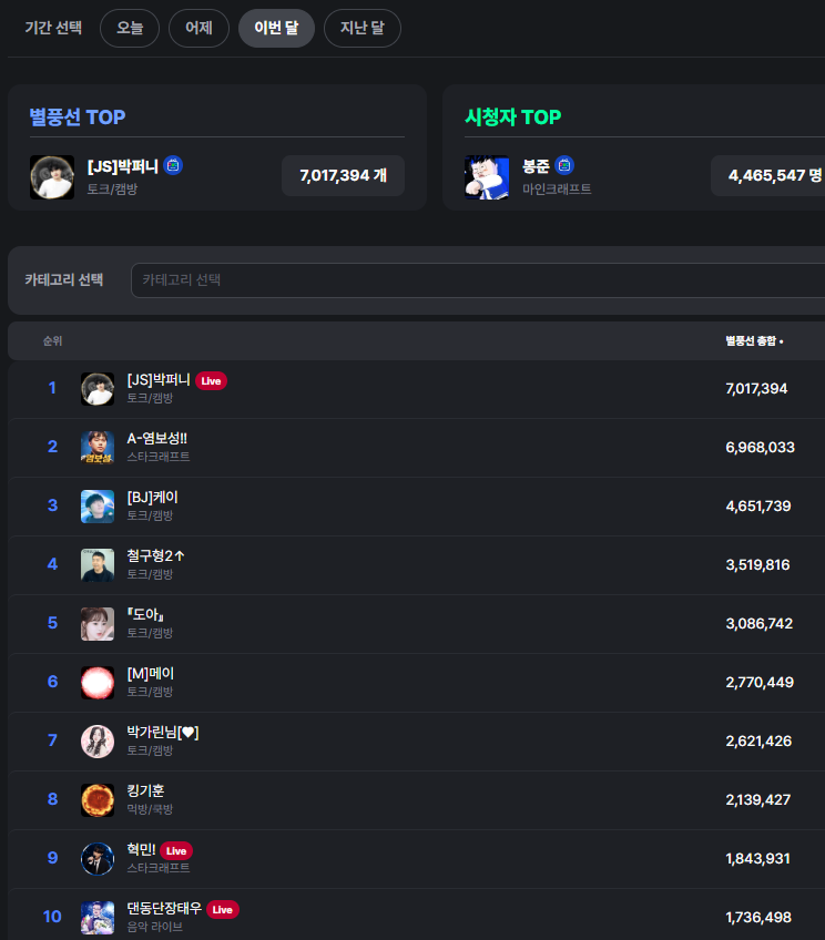 순위는 둘째치고 저점이 150만인게 ㅈㄴ 신기하노