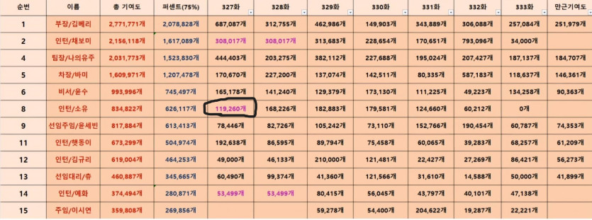 그리고 소유님은 1회차꺼 돈으로 가져갔다고 들었는데 그럼 1회차 기여도0이어야 되는게 아닌지...