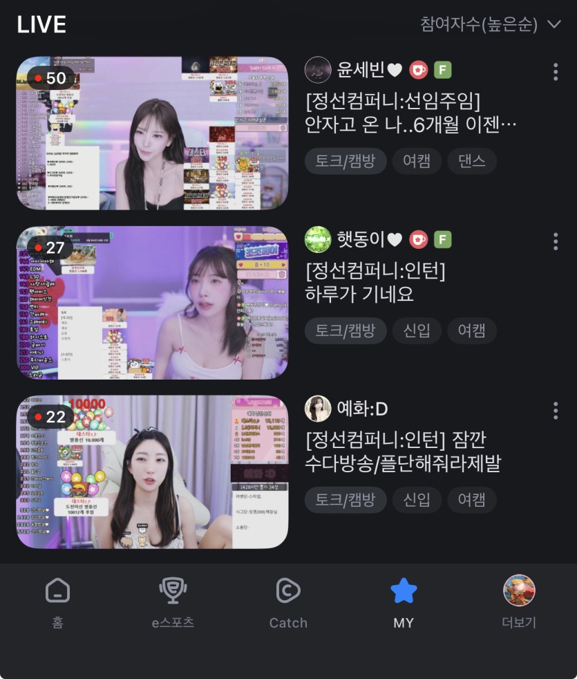 새벽 5시가 조금 넘어서 숲 어플을 켰는데, 그들은 이미 방송을